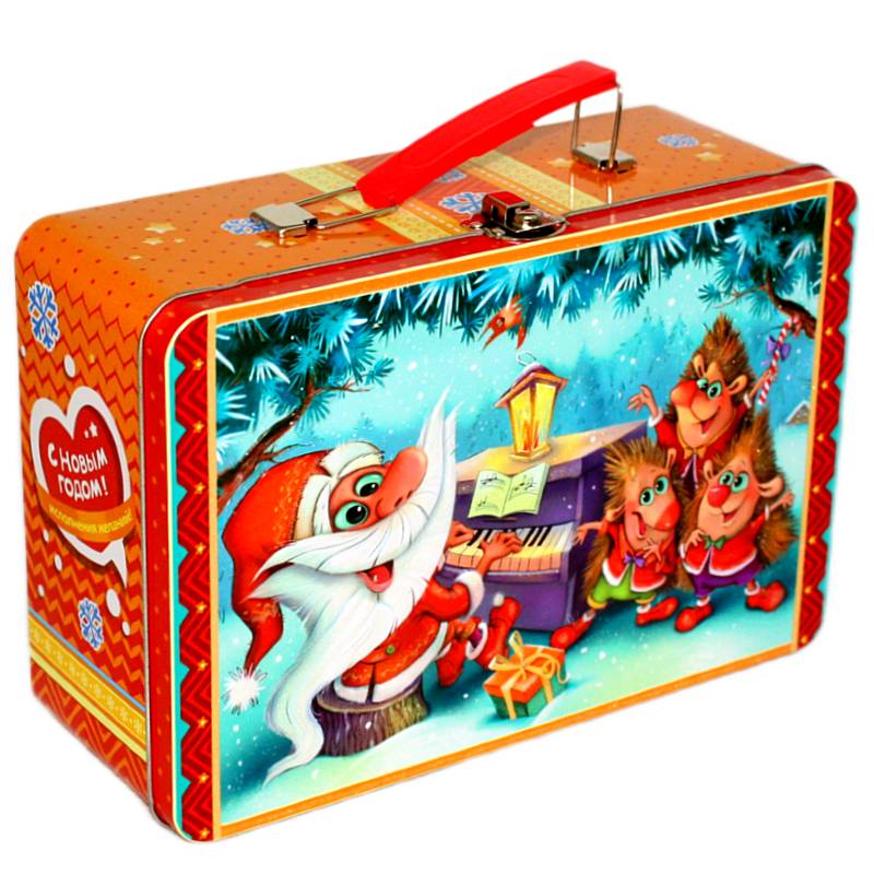 Оригинальная жестяная упаковка с новогодней тематикой и чудесным составом вкуснейших конфет. Вашим деткам понравится!