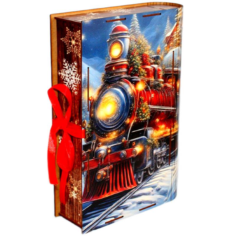 Сладкий новогодний подарок в упаковке из дерева весом 1000 грамм