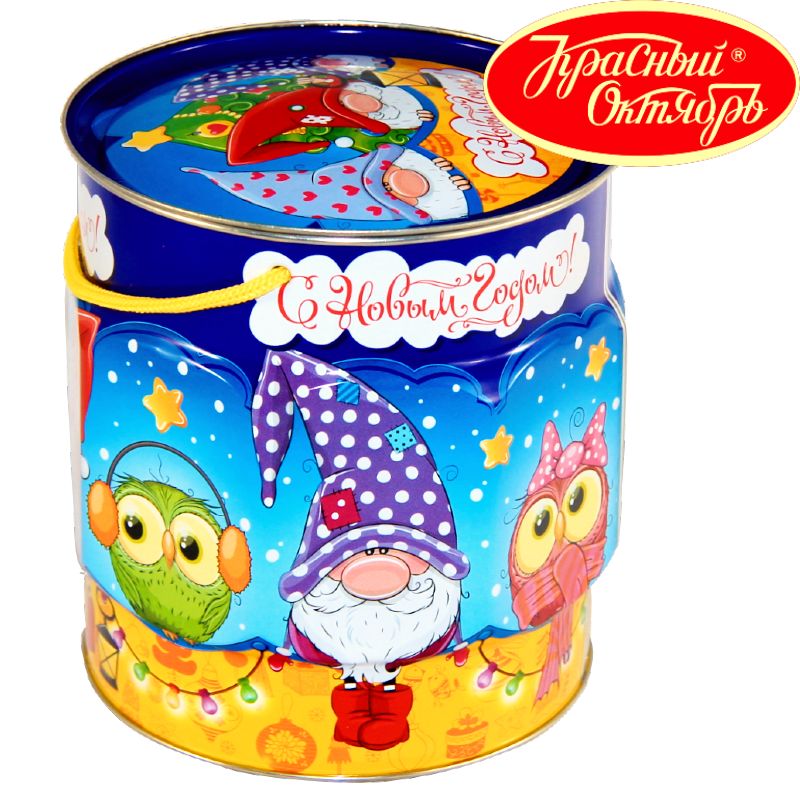 Сладкий подарок на Новый Год в жестяной упаковке весом 1000 грамм
