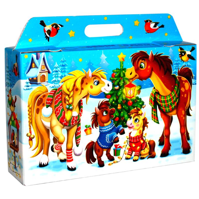 Детский новогодний подарок в картонной упаковке весом 1500 грамм