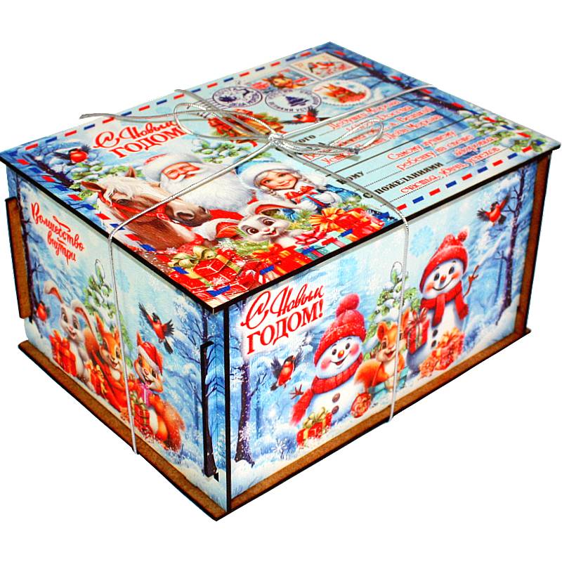Сладкий подарок на Новый Год в упаковке из ЛХДФ весом 1500 грамм