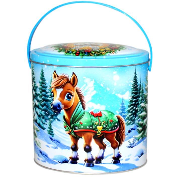 Сладкий подарок на Новый Год в жестяной упаковке весом 800 грамм