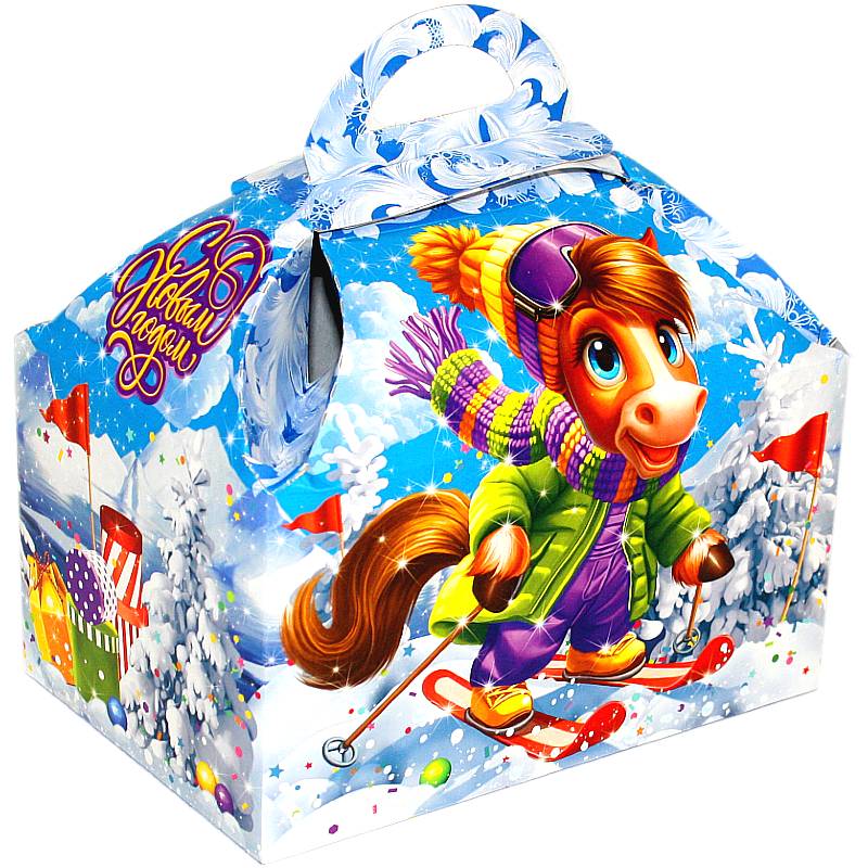 Сладкий новогодний подарок в картонной упаковке весом 850 грамм