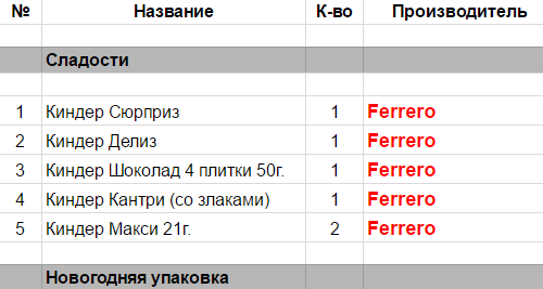 Опубликовано в Составы подарков