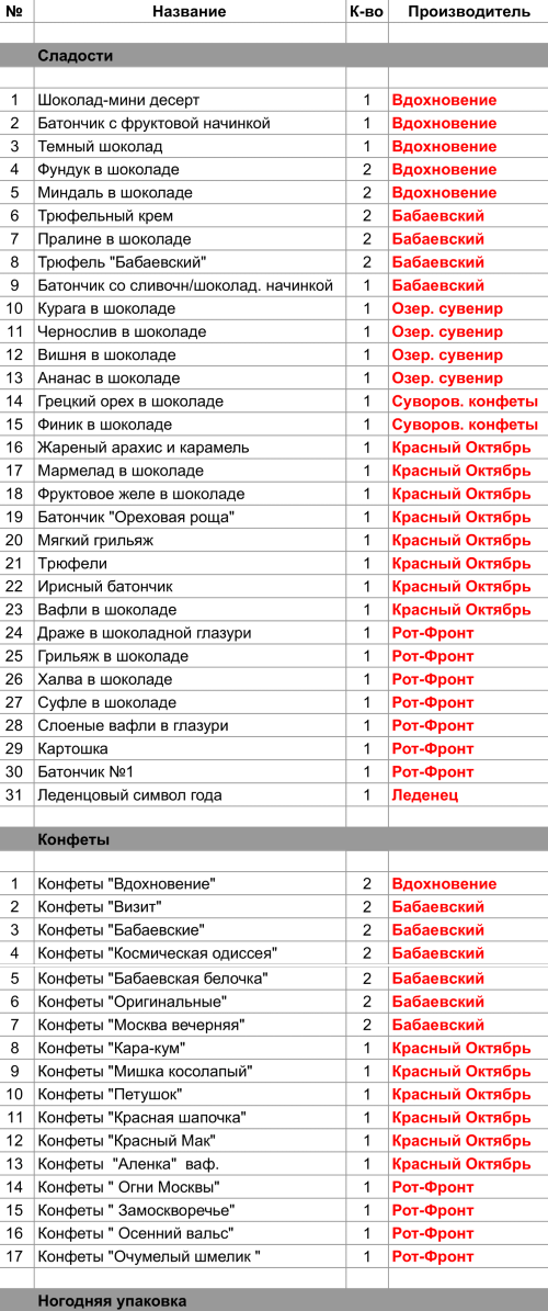 Опубликовано в Составы подарков